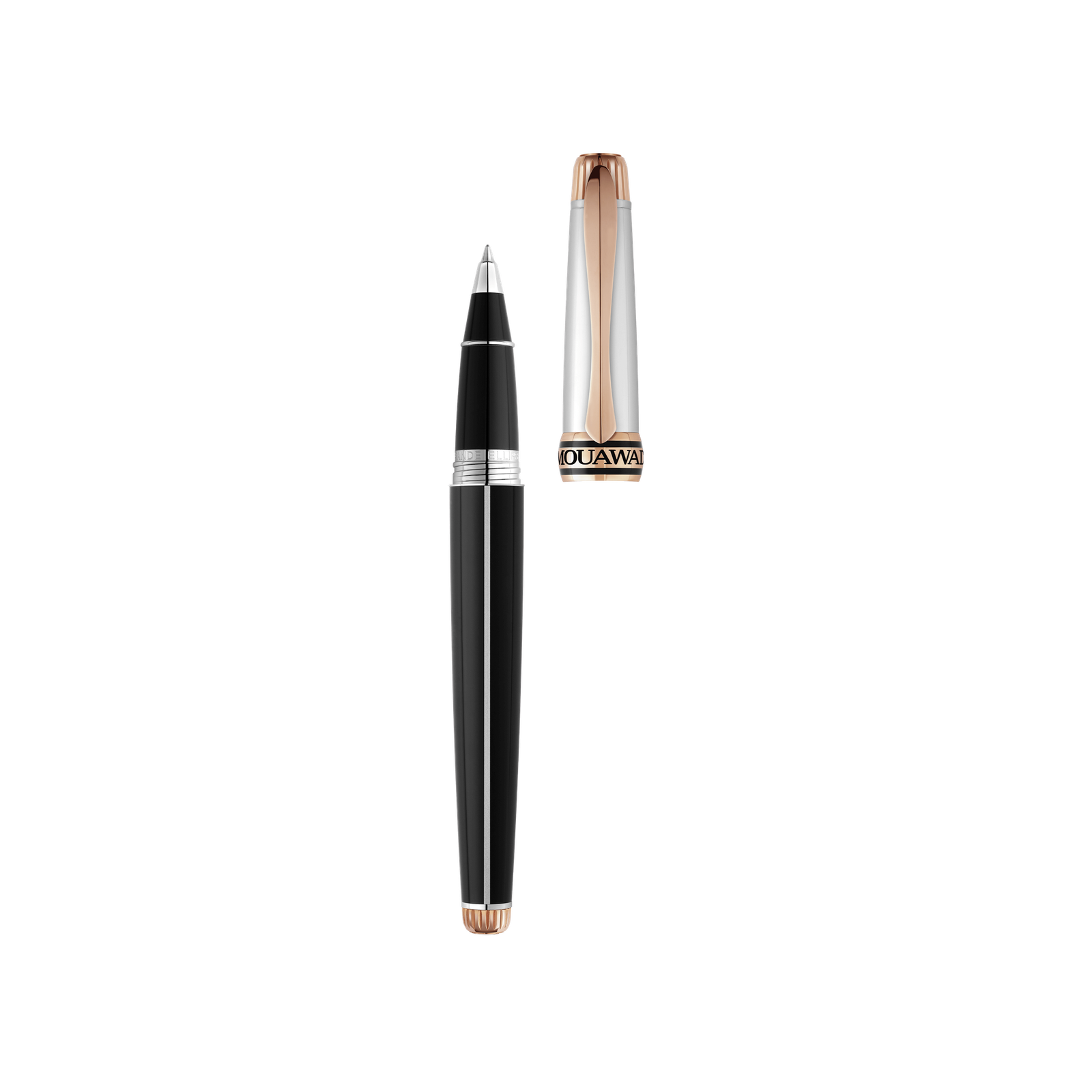 قلم حبر جاف (بولبوينت) جراند إليبس باللّكر الأسود من البلاديوم والذهب الوردي