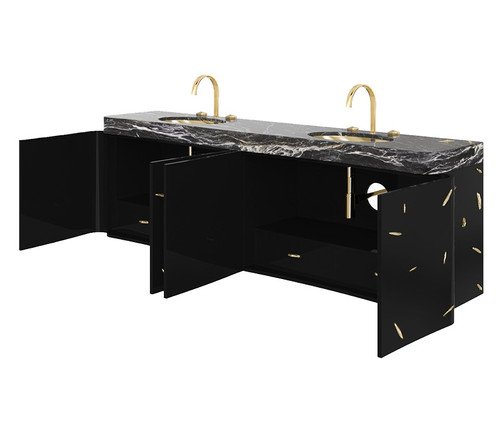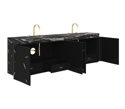 Baraka is an ancient Sufi word that means ”a blessing – the breath of life -, or essence of life” from which the evolutionary process unfolds. Glamorous, beautifully realized and enhanced by never-ending contrasts between ancient and contemporary lines, the Baraka Suspension cabinet in Black Kenya marble is the perfect item to complete your luxury bathroom design look.