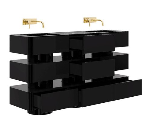Shinto shrines are places of reverence, and the abodes of the ‘kami’ Gods, where sacred objects are stored in the innermost chamber of the altar, not seen by anybody. The Shinto Washbasin was designed with a gloss black lacquered structure and Nero Marquina marble sinks to add a grand luxurious glamour to your bathroom design.
